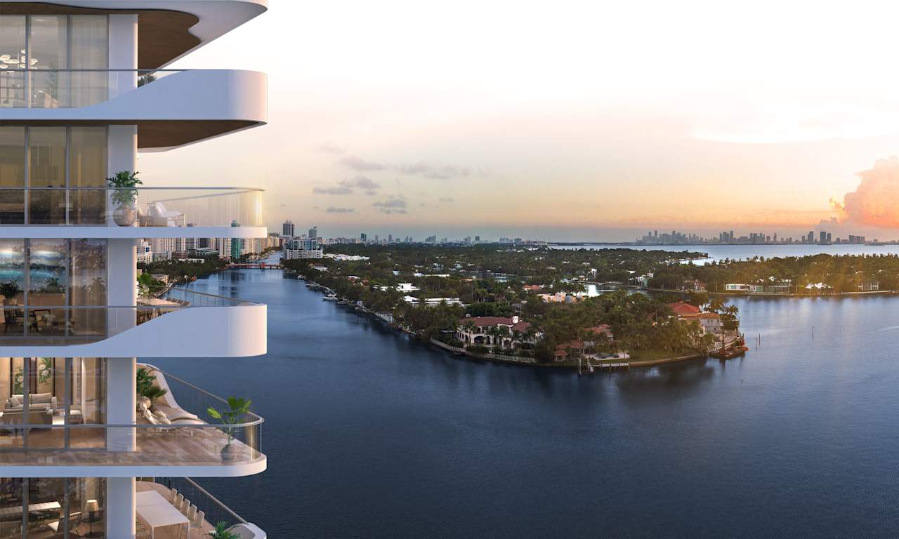 Panoramic city and Biscayne Bay views overlooking the Miami skyline.